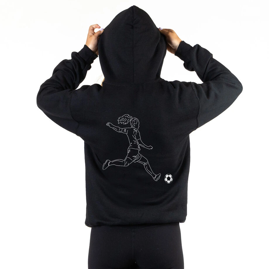 Wear your favorite soccer design on the BACK of your sweatshirt with a smaller design on the front. Ideal for athletes, our pullover hooded sweatshirt is warm and comfortable and features our original artwork printed on the front and back. This sweatshirt is not only stylish and fun, it’s also designed from a blend of cotton and moisture-wicking polyester, making it the ideal hoodie for athletes both on and off the field. The double-lined hood can be pulled up for protection from the elements such as wind and rain, and the front pouch pocket is the perfect size for warming cold hands. A great gift for an individual player or the whole team at the end of the season, in addition to any special occasion. Coming in a variety of colors and unique designs these are a great wardrobe collection.