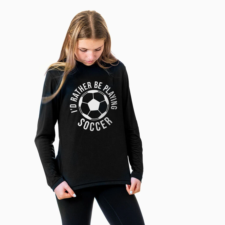 Soccer Long Sleeve Performance Tee – I’d Rather Be Playing Soccer (Round)