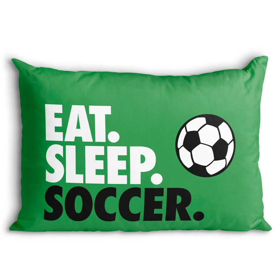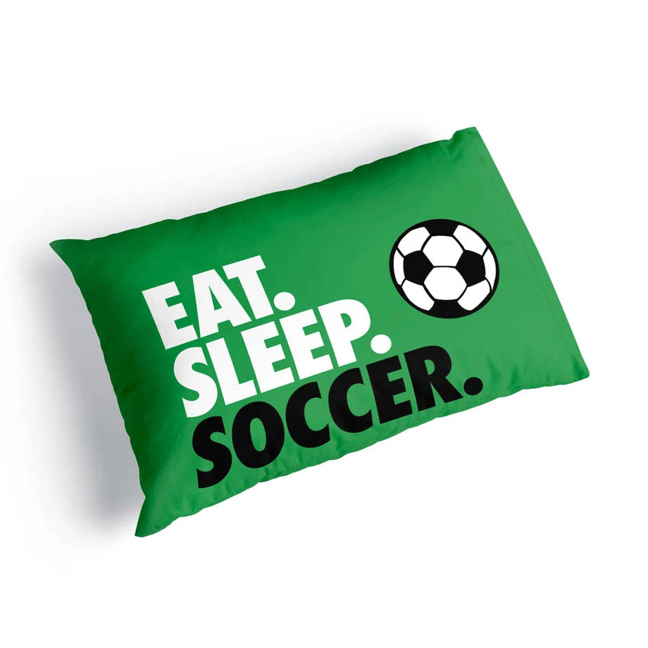 Dedicated players will love our soccer pillowcase, available in a selection of colors, with a bold “Eat. Sleep. Soccer.” design that stands out in any room. An excellent bedroom accent, the 30″ X 20″ pillow will fit most standard pillows and is a soft and comfortable pillowcase that players will love falling asleep on… when they’re not practicing or playing a game, or enjoying a delicious meal. This is a fun pillowcase that soccer players will love having on their beds, that they will love to receive as an end of the season gift, as well as one for birthdays, holidays, or just because it reminded you of a special soccer player in your life.