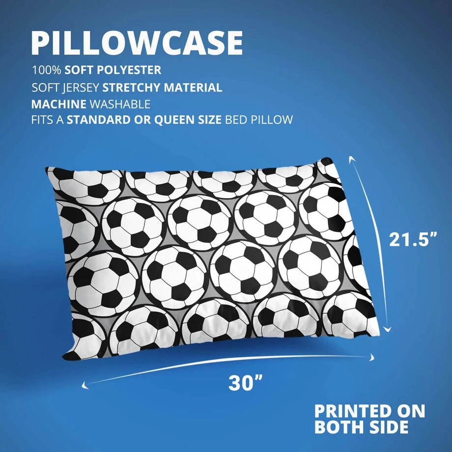 Dedicated players will love our soccer pillowcase, with a double sided soccer ball design that stands out in any room. An excellent bedroom accent, the 30″ x 20″ pillowcase will fit most standard pillows and is soft and comfortable, players will love falling asleep on. These sports pillowcases are a great end of the season gift, birthday, holiday, or just because it reminded you of a special soccer player in your life. Sleep cozily surrounded by soccer pride.