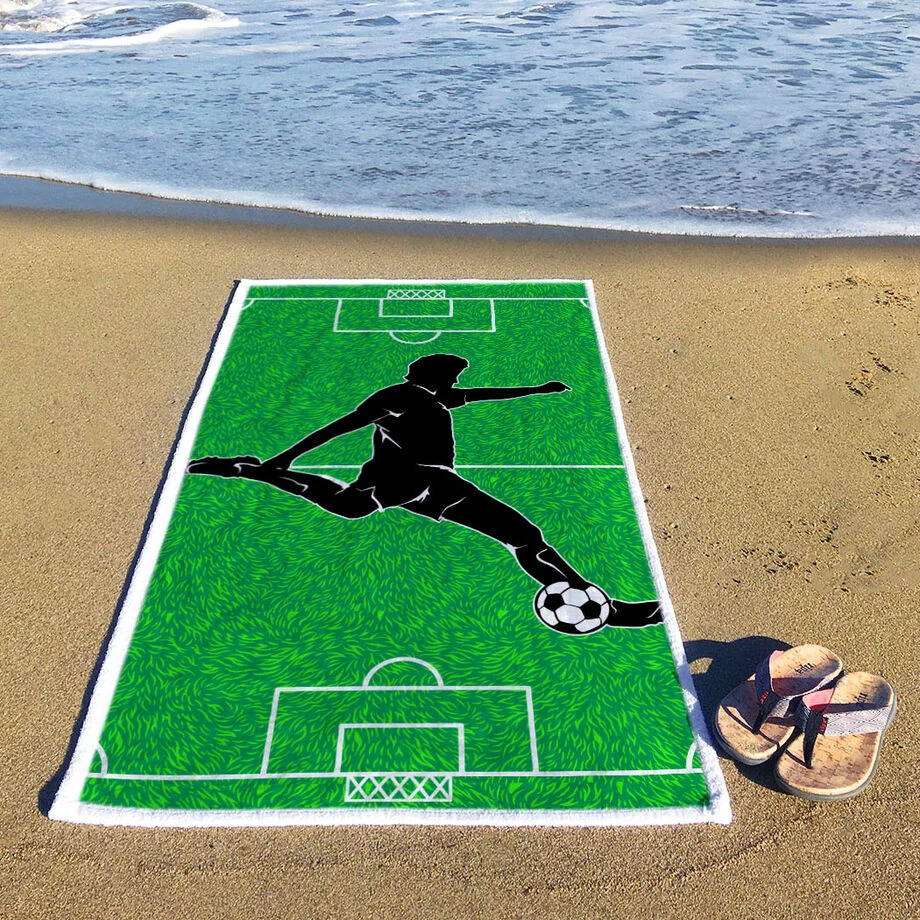 Any soccer player will love to show off that soccer pride and accomplishments at the pool or beach with one of our super absorbent premium towels. This densely thick woven premium towel is luxuriously soft and absorbent, which makes it the perfect towel for home, beach, or pool. The 60″ X 30″ plush towel can also easily double as a beach and pool blanket.