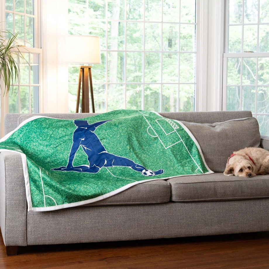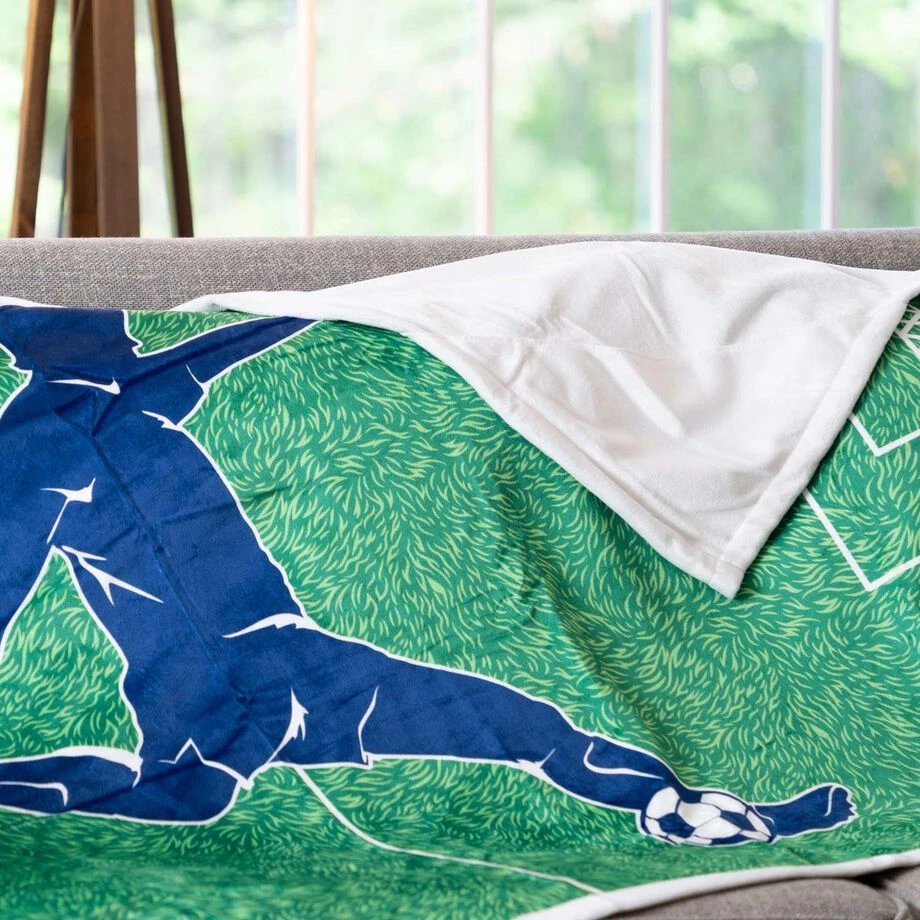 This 58 x 38″ plush premium soccer blanket wrap is densely woven, luxuriously soft and perfect to wrap yourself in after a demanding practice or game. With corner hand pockets, you won’t need to worry about this blanket falling off when you are cheering on your team from the sidelines or just cozied up on the couch. Pro tip, take it to the beach or use it as a picnic blanket and add weighted items to the corner pockets to keep it from blowing away. Our premium blankets make for a great gift idea for any occasion, cause who doesn’t love the gift of warmth!