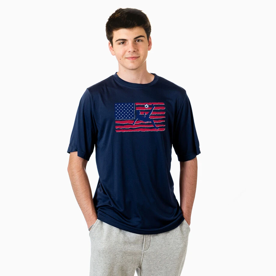 Gear up for a practice/game on or off the field or any activity with our short sleeve tech tee with a unique soccer design, this is the perfect tee to show off that soccer pride. This moisture-wicking short sleeve tech tee is a great way to keep you dry during all activities or daily wear. With UV protection it will be sure to protect your skin as well. This shirt also makes for a great gift for any occasion.