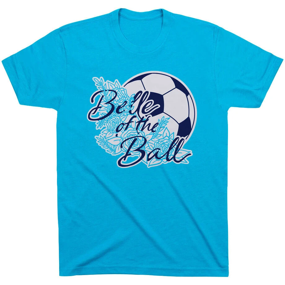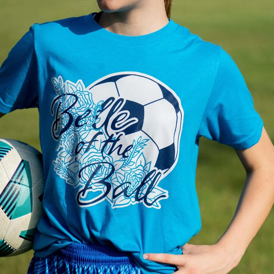 You are the belle of the ball, so let everyone know it in this soccer t-shirt! With our tees being made from a super soft jersey material that ensures comfort and functionality, you may find yourself never wanting to take them off! If you want to add a touch of personalization to our fun designs, you can add your team or favorite number to the back. With all original designs there is something for everyone, making our short sleeve tees a great gift for any soccer player or fan.