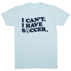 Show off your best celly in this I Can’t. I Have Soccer. tee! With our tees being made from a super soft jersey material that ensures comfort and functionality, you may find yourself never wanting to take them off! This original design soccer graphic tee is sure to be a hit on the field – making it a great gift idea! If you want to add a touch of personalization to our fun designs, you can add your team or favorite number to the back.