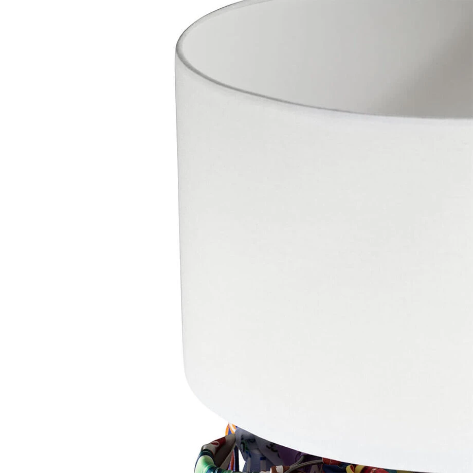 - Linen drum shade included (measures H: 9.5″ W: 16″)