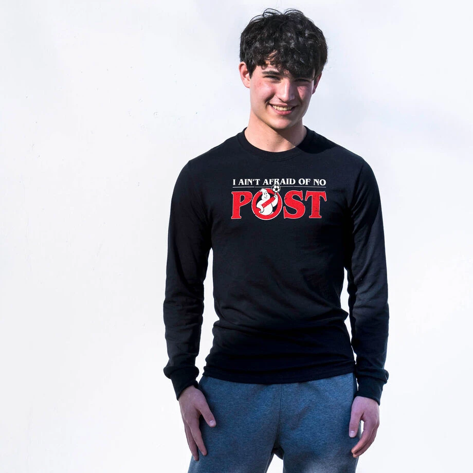It’s nothing but net in our Ain’t Afraid of No Post design! It’s a great gift idea for anyone who just can’t get enough of that soccer lifestyle. Our long sleeve tees feature superior softness and a relaxed, unisex fit making them a great go to shirt for everyday wear. Even get them personalized with your # on the back!