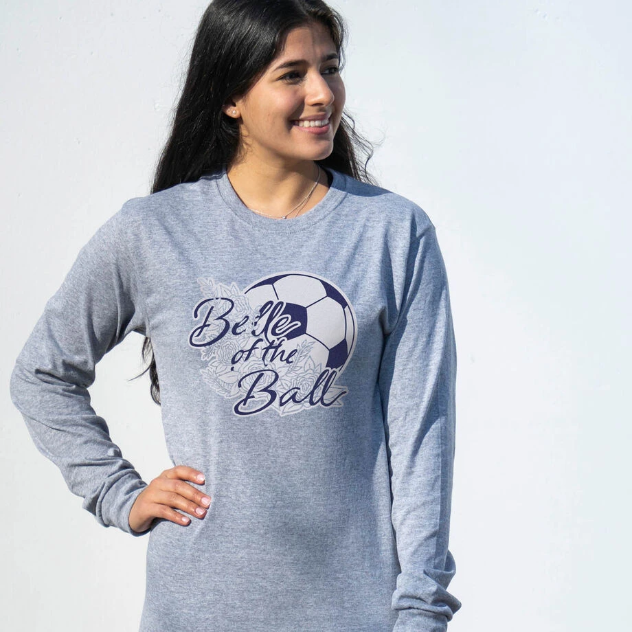 You are the belle of the ball, so let everyone know it in this soccer design! Our long sleeve tees feature superior softness and a relaxed, unisex fit making them a great go to shirt for everyday wear. Even get them personalized with your # on the back, making for a great gift for any occasion!