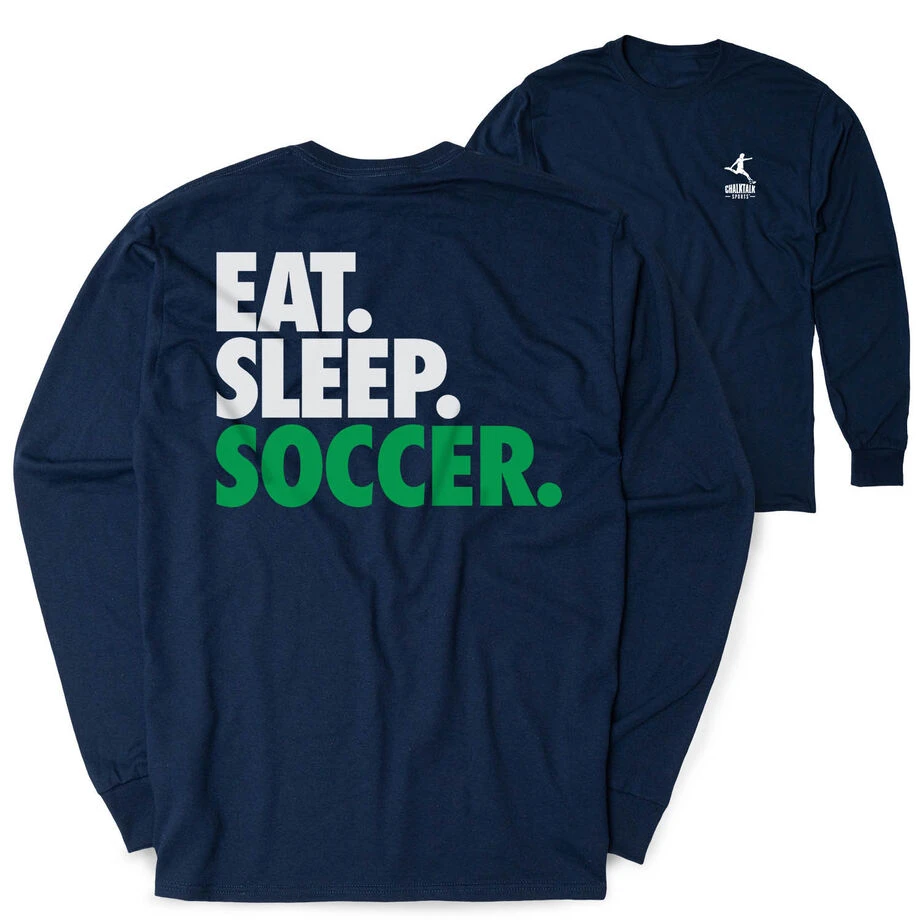 Wear your favorite soccer design on the BACK of your shirt with a smaller design on the front. Show off your soccer pride with this bold and stylized long sleeve soccer t-shirt. It’s a great soccer gift idea for any player who just can’t get enough of that soccer lifestyle. It makes for the perfect end of season gift or any special occasion. Coming in a variety of colors and unique designs these are a great wardrobe collection.