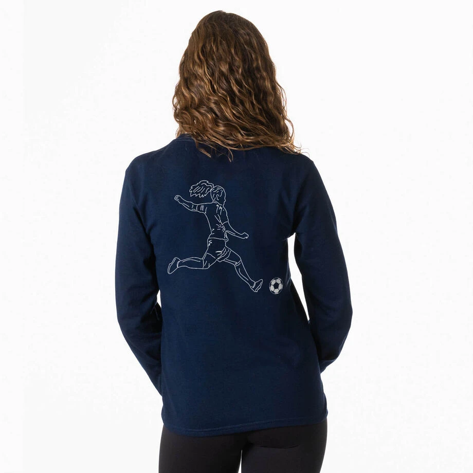 Show off your love for soccer with our exclusive Back Design Long Sleeve Shirts. These stylish shirts feature our exclusive “Soccer Girl Player Sketch” design on the back, allowing you to express your passion for the sport in a fashionable way. Meticulously crafted with sharp attention to detail, each shirt boasts a soccer design that is sure to turn heads. Whether you’re a dedicated fan, an avid player, or simply admire the spirit of soccer, this shirt is the perfect choice to make a bold statement wherever you go. Available in a variety of colors and unique designs, these shirts are a must-have for any athlete’s wardrobe.