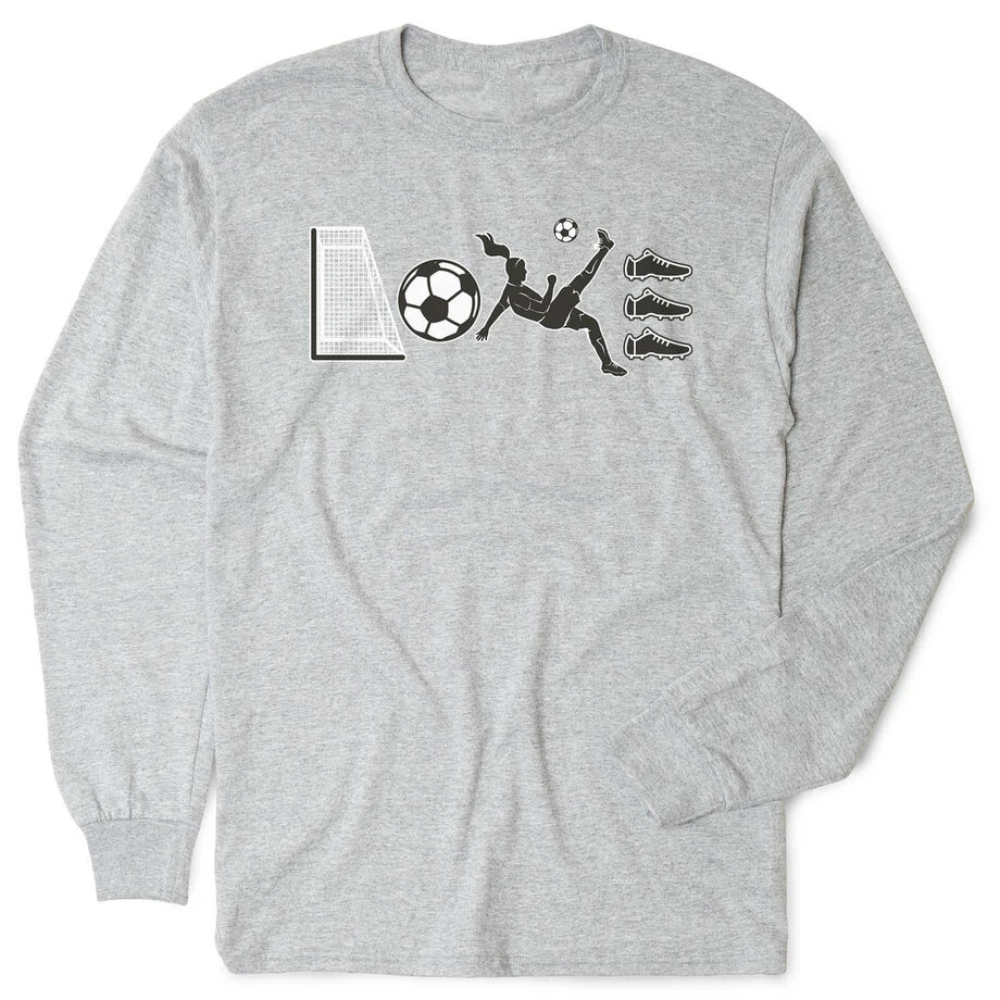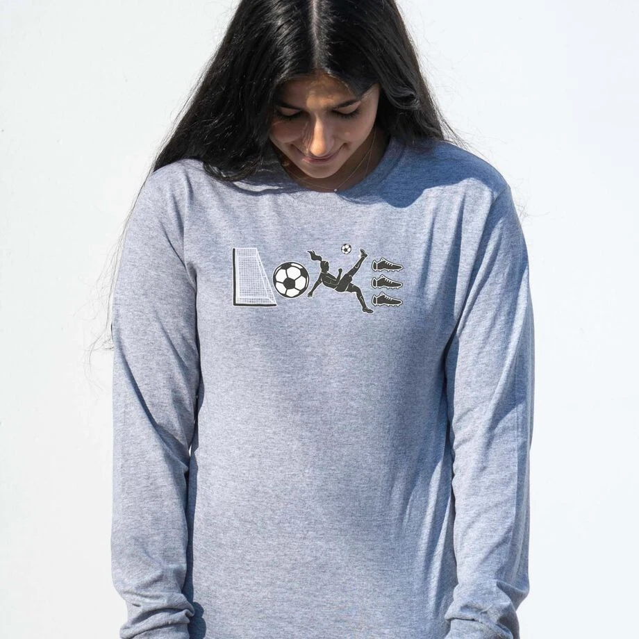 Show off your soccer pride with this bold and stylized long sleeve soccer shirt. It’s a great gift idea for anyone who just can’t get enough of that soccer lifestyle. It makes for the perfect end of season gift or any special occasion. Coming in a variety of colors and designs these are a great wardrobe collection. Even get them personalized with your # on the back!