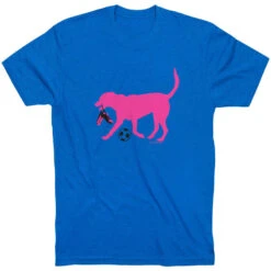 Dog lovers who play soccer will enjoy this adorable short sleeve soccer T-Shirt featuring Sasha the Soccer dog, holding a pair of cleats and kicking along her soccer ball, ready for a game… just like the most dedicated players are. This comfortable everyday T-Shirt is sure to be one that soccer players wear all the time.