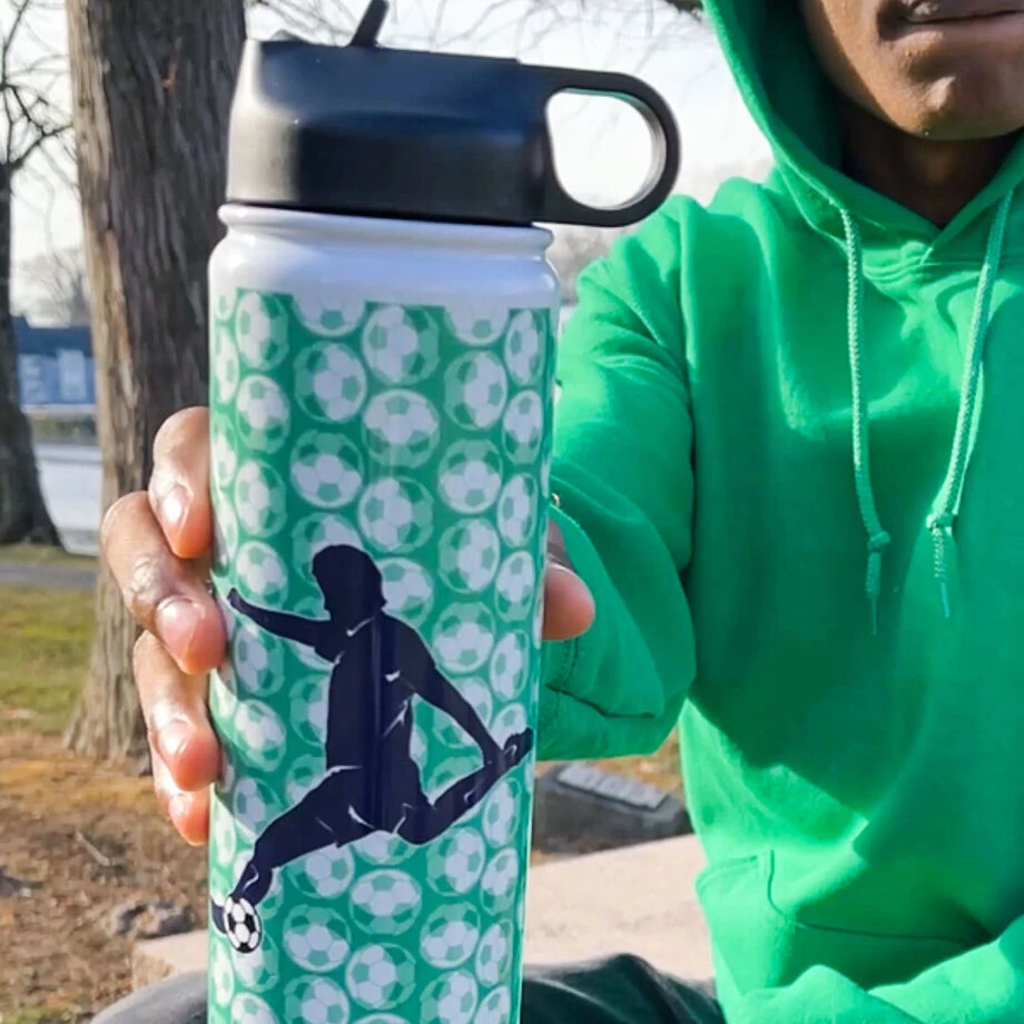 - EXCLUSIVE DESIGN: Stainless steel water bottle features an exclusive soccer design