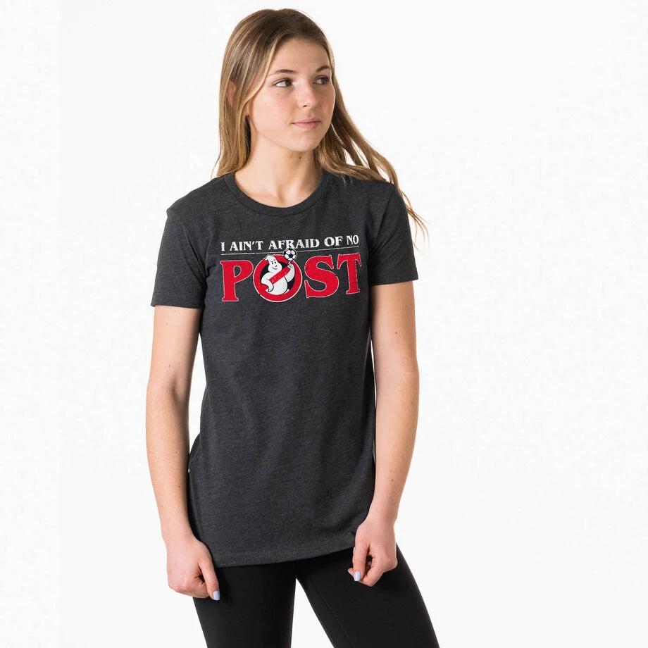 Its nothing but net in our Ain’t Afraid of No Post soccer everyday tee! Slim-fitting, slightly heathered with cap short sleeves, this women’s t-shirt pairs perfectly with any choice of bottoms, from leggings and jeans to shorts and skirts! With its soft, lightweight feel this will easily become your favorite shirt for everyday wear or your go to gift for any soccer player or fan.