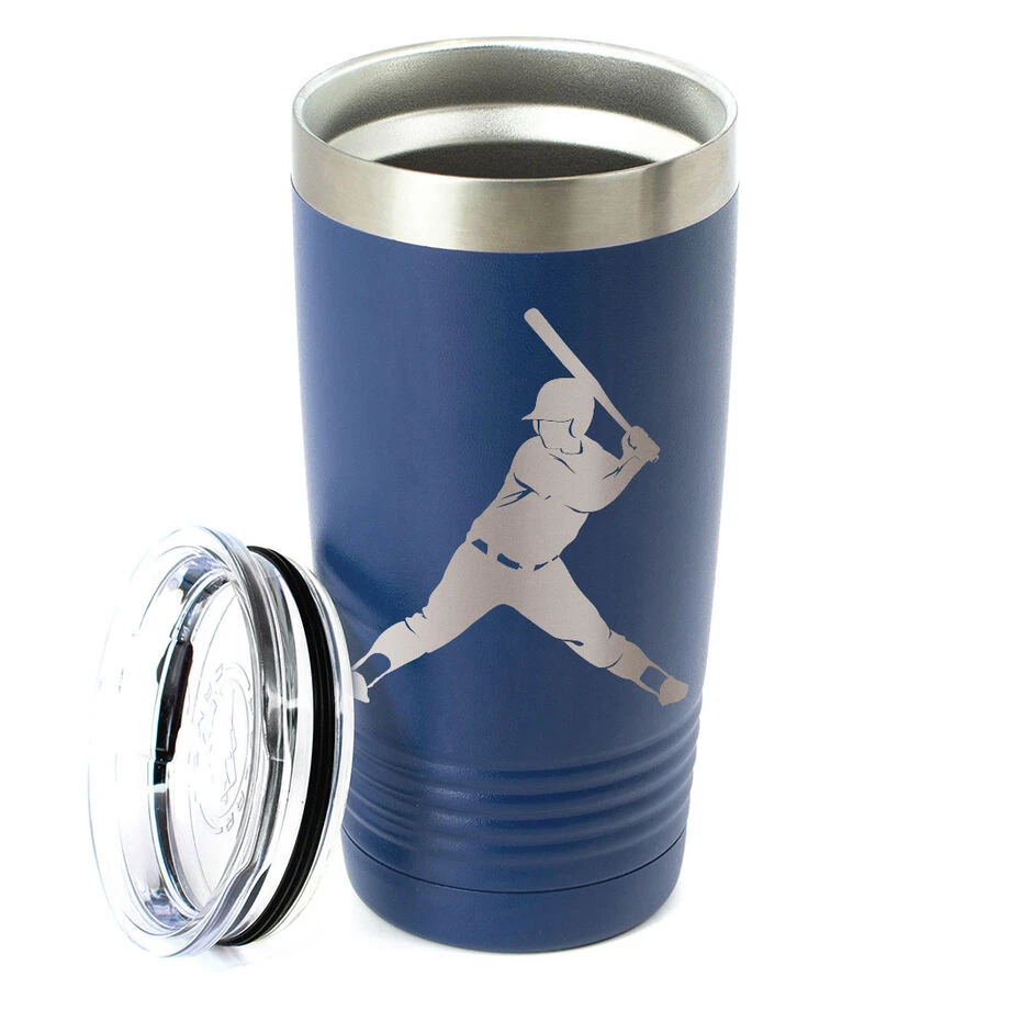 This 20 oz. stainless steel softball tumbler is engraved with a bold softball batter design for an attractive, durable, and practical tumbler for both hot and cold beverages. With its double wall vacuum insulated interior, the tumbler is perfect for keeping hot drinks hot and cold drinks cold for extended periods of time, which make it perfect for long commutes or for road trips. A great softball gift idea for any individual player or team, this tumbler is sure to be a gift any softball player will use all year round.
