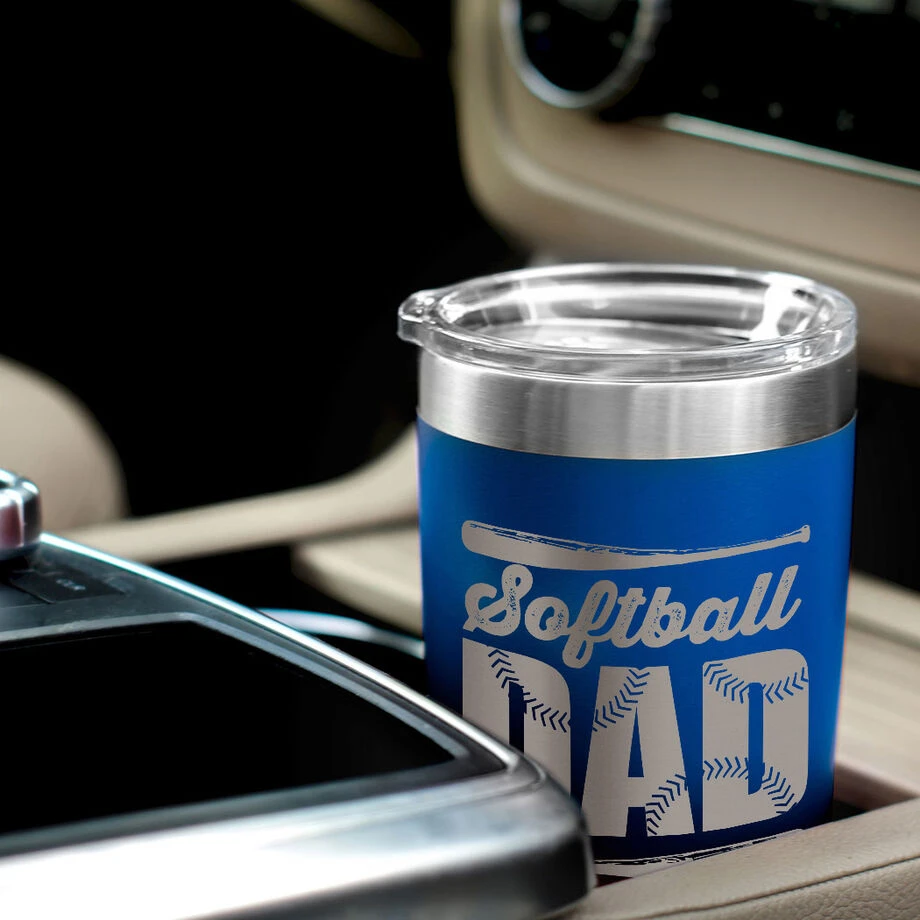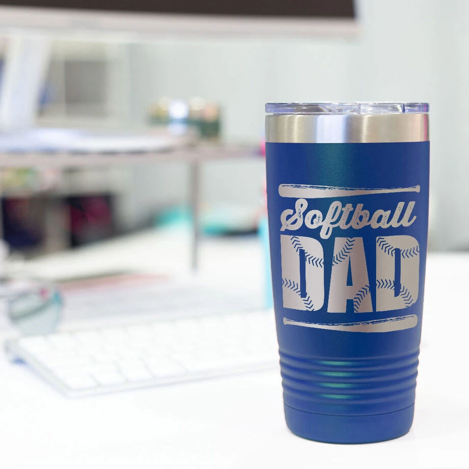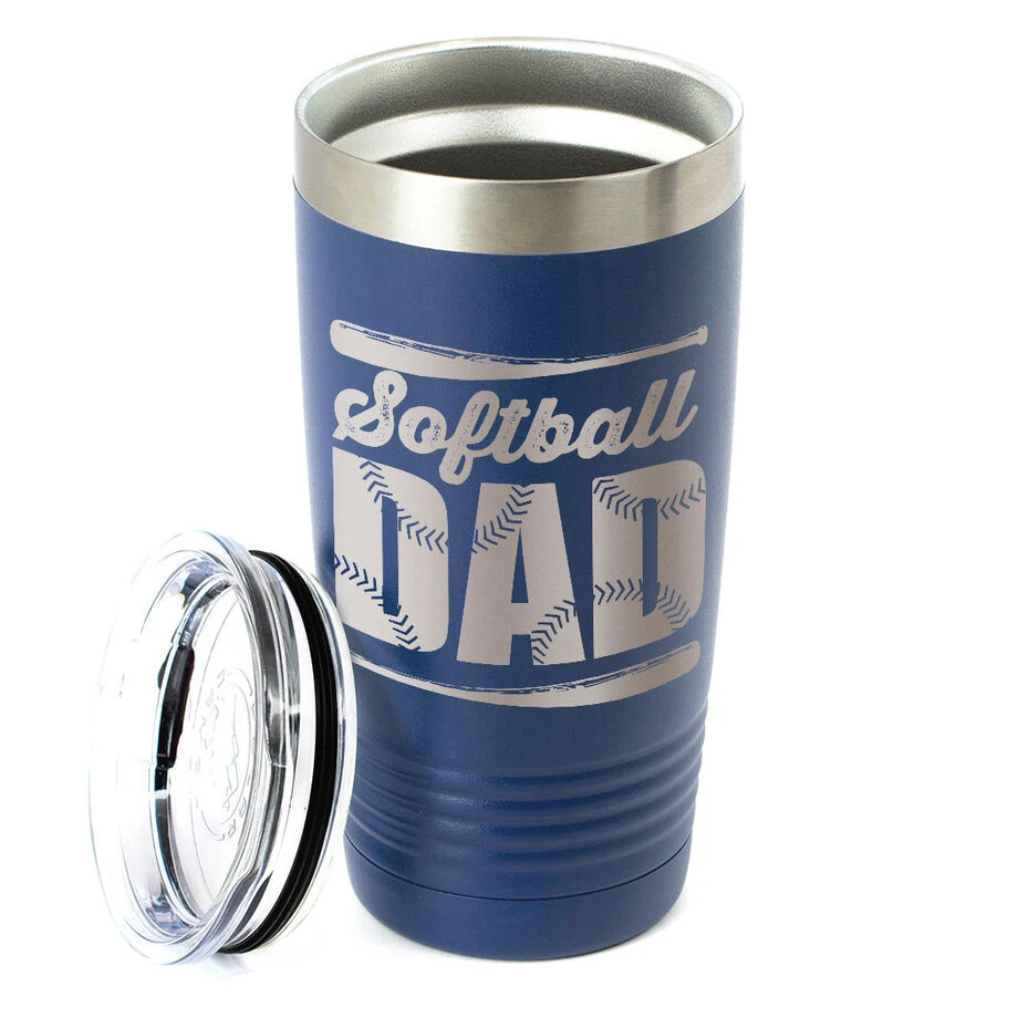 Softball dads will love this engraved stainless steel softball travel tumbler, designed for both hot and cold drinks. The 20 oz tumbler is a great looking way to ensure your hot beverages stay hot, and cold beverages stay cold, while on the go – even outdoors. The double-wall vacuum insulation is designed to lengthen the amount of time the beverage stays at, or as close as possible, to their ideal temperature. The classic eye-catching tumbler is a great gift for any softball dad and will be a great surprise – and a great softball dad gift – for him to receive on Father’s Day or any other special occasion.