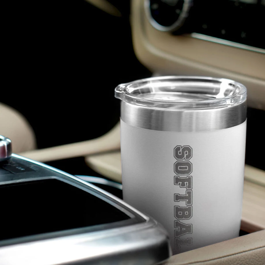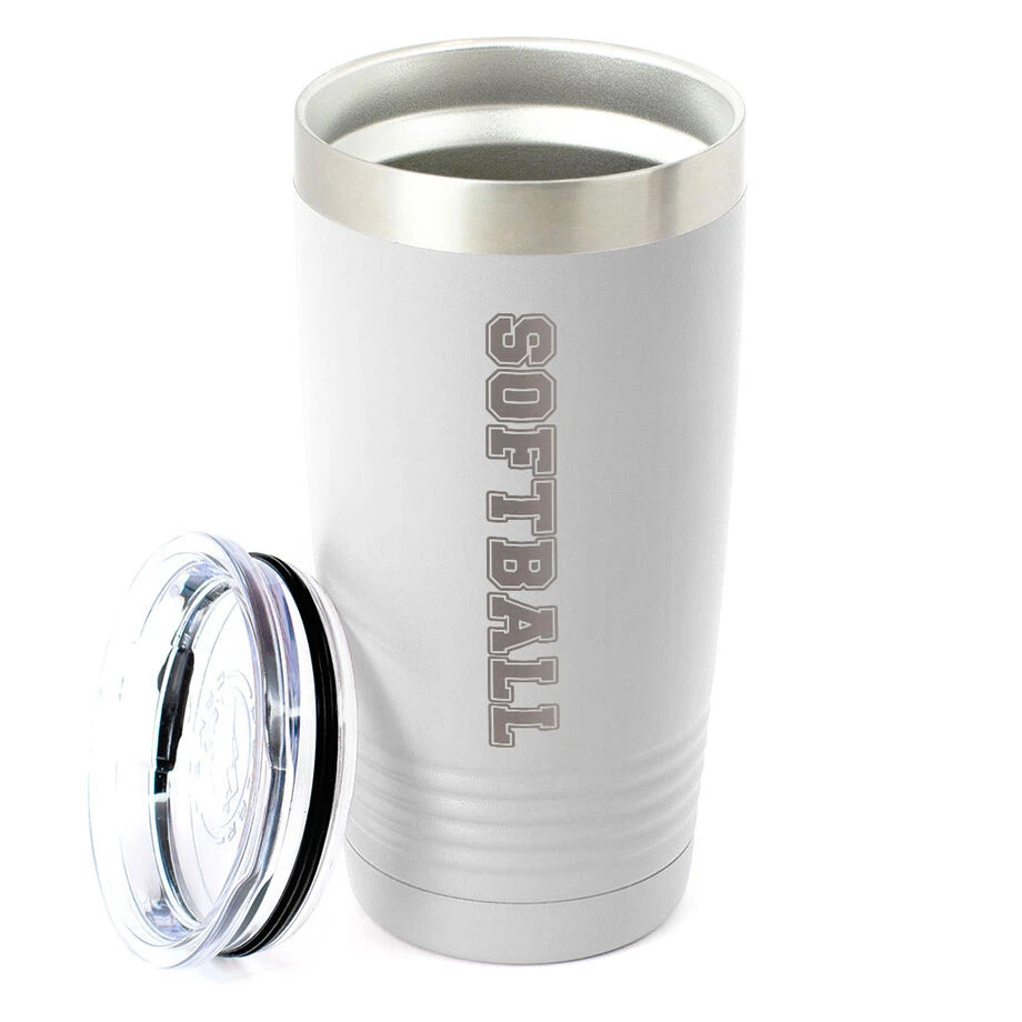 This 20 oz. stainless steel softball tumbler is laser engraved with a bold softball text design and is the perfect container for keeping any hot or cold beverage at the optimal temperature. The double-wall vacuum insulated interior allows for hot drinks to stay hot and cold beverages to stay cold for extended periods of time so they can be enjoyed for as long as possible. Perfect to grab while on the go, commuting, or for work or school, this is an ideal softball gift for birthdays, holidays, or special occasions – including the end of the season and graduations.