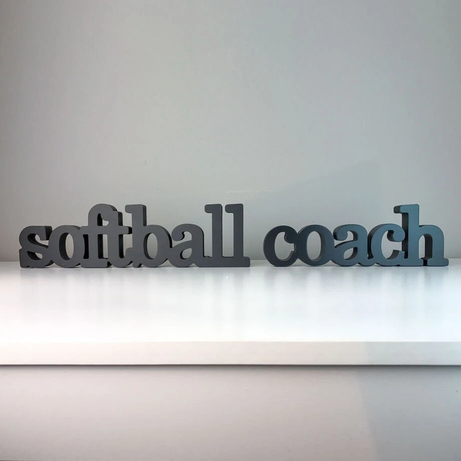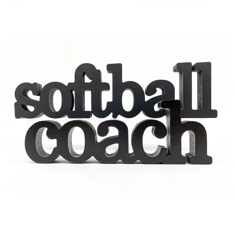 Show your softball coach how thankful you are for all that hard work with an end of the season gift of our softball coach Wood Words that are sure to be a hit. The two-pack ships with two black Wood Words – “softball” and “coach” for a stylish and original display piece that stands on its own on any flat surface. such as a shelf or a desk. Use it as a paperweight, bookends, or as part of a special display that celebrates a lifetime of coaching. You coach will love this unique, decorative piece that will no doubt put a smile on his or her face.