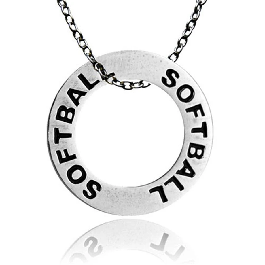 Keep it classic and simple with our popular, free-floating softball message ring softball necklace. Players love this stylish everyday softball necklace – available on your choice of adjustable silver chains, or pink or black cord.