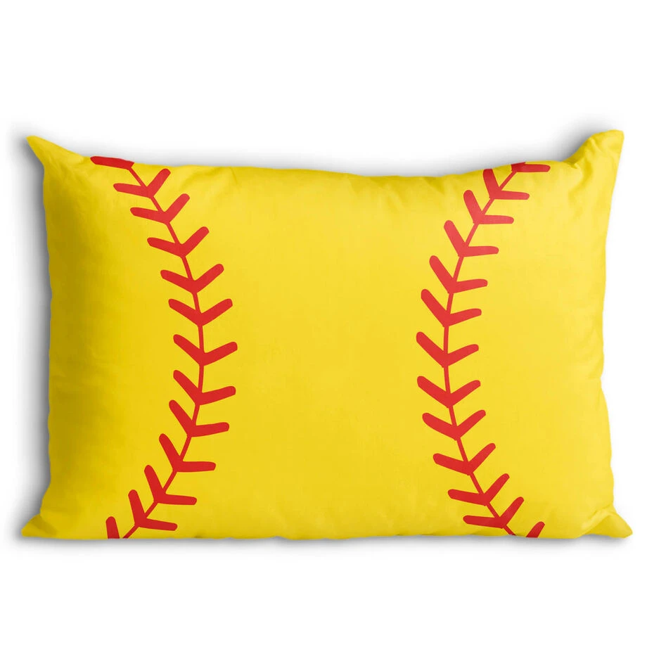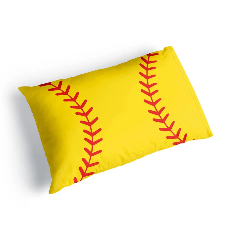 This softball pillowcase features an up-close, artistic rendition of a softball for a great pillowcase and accent for any player’s bedroom. The original artwork is on a polyester pillowcase that’s a soft and comfortable pillowcase that fits almost all standard size pillows and is the perfect way for a player to rest up for a big game, dreaming of big catches and hitting home runs. Surprise a favorite player or each member of the team with this unique softball gift that’s both practical and fun and sure to be a favorite pillowcase – it’s a great gift for the end of the season or any occasion.