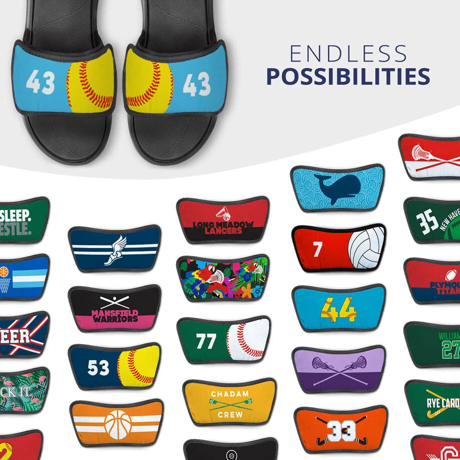 Show off that softball pride everywhere you go with a pair of softball Repwell® slide sandals and the interchangeable design straps. With the removable design straps you can mix and match different straps and represent different sports and designs all on one pair of sandals. With the endless possibilities for designs these Repwell® slide sandals and straps make for a great gift not just for a player but for the whole team.