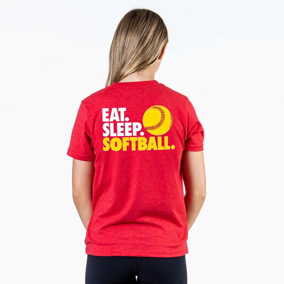Wear your favorite softball design on the BACK of your shirt with a smaller design on the front. Show off your softball pride with this bold and stylized short sleeve softball t-shirt. It’s a great softball gift idea for any player who just can’t get enough of that softball lifestyle. It makes for the perfect end of season gift or any special occasion. Coming in a variety of colors and unique designs these are a great wardrobe collection.