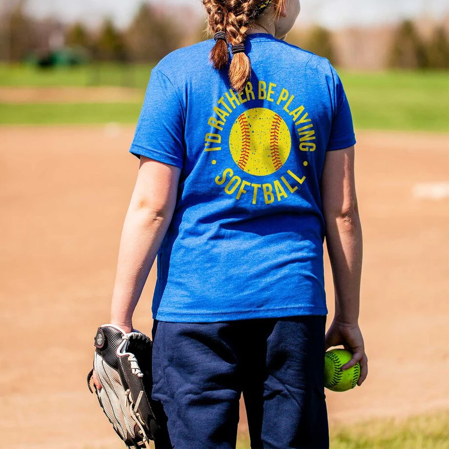 Wear your favorite softball design on the BACK of your shirt with a smaller design on the front. Show off your softball pride with this bold and stylized short sleeve softball t-shirt. It’s a great softball gift idea for any player who just can’t get enough of that softball lifestyle. It makes for the perfect end of season gift or any special occasion. Coming in a variety of colors and unique designs these are a great wardrobe collection.