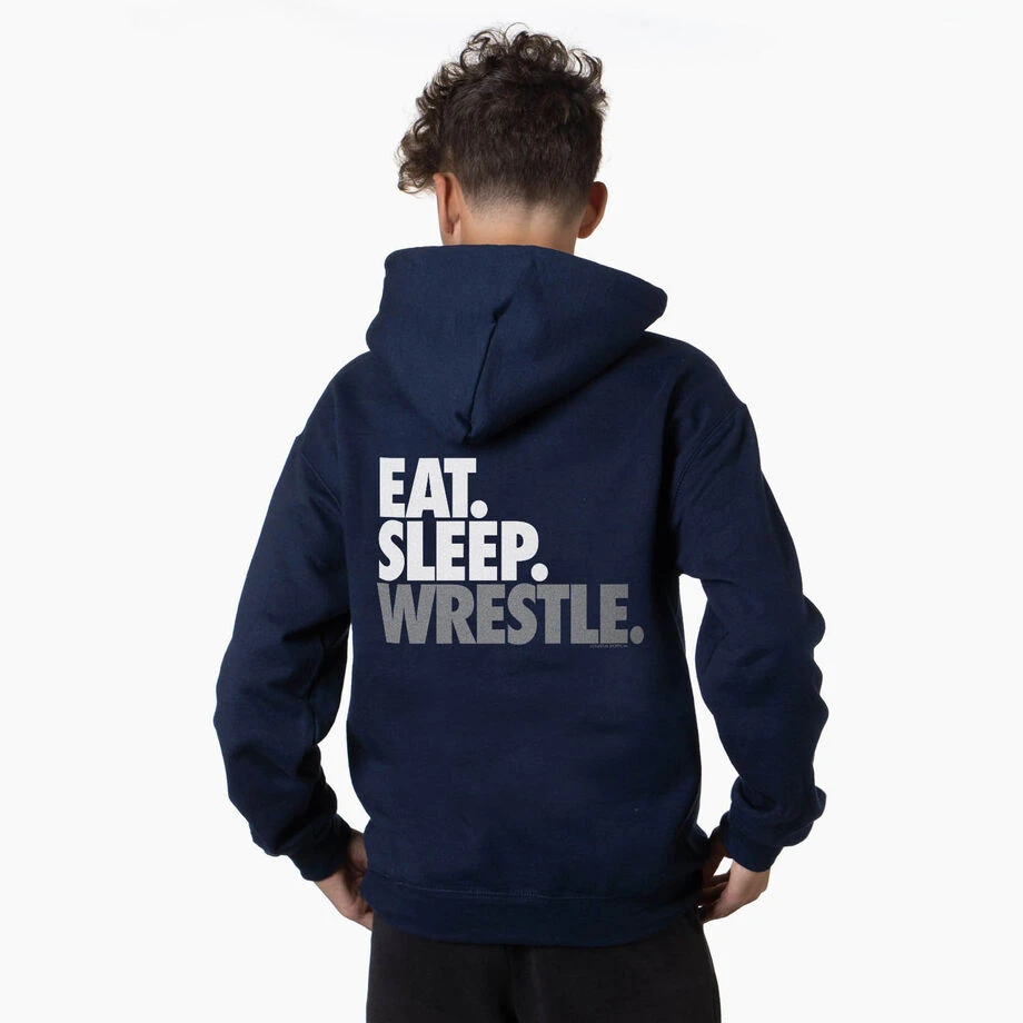 Wear this wrestling design on the BACK of your sweatshirt with a smaller wrestling design on the front. Ideal for athletes, our pullover hooded sweatshirt is warm, comfortable and features our original artwork printed on the front and back. This sweatshirt is not only stylish and fun, it’s also designed from a blend of cotton and moisture-wicking polyester, making it the ideal hoodie for athletes both on and off the mat. The double-lined hood can be pulled up for protection from the elements such as wind and rain, and the front pouch pocket is the perfect size for warming cold hands. A great gift for an individual player or the whole team at the end of the season. Coming in a variety of colors and unique designs these are a great wardrobe collection.