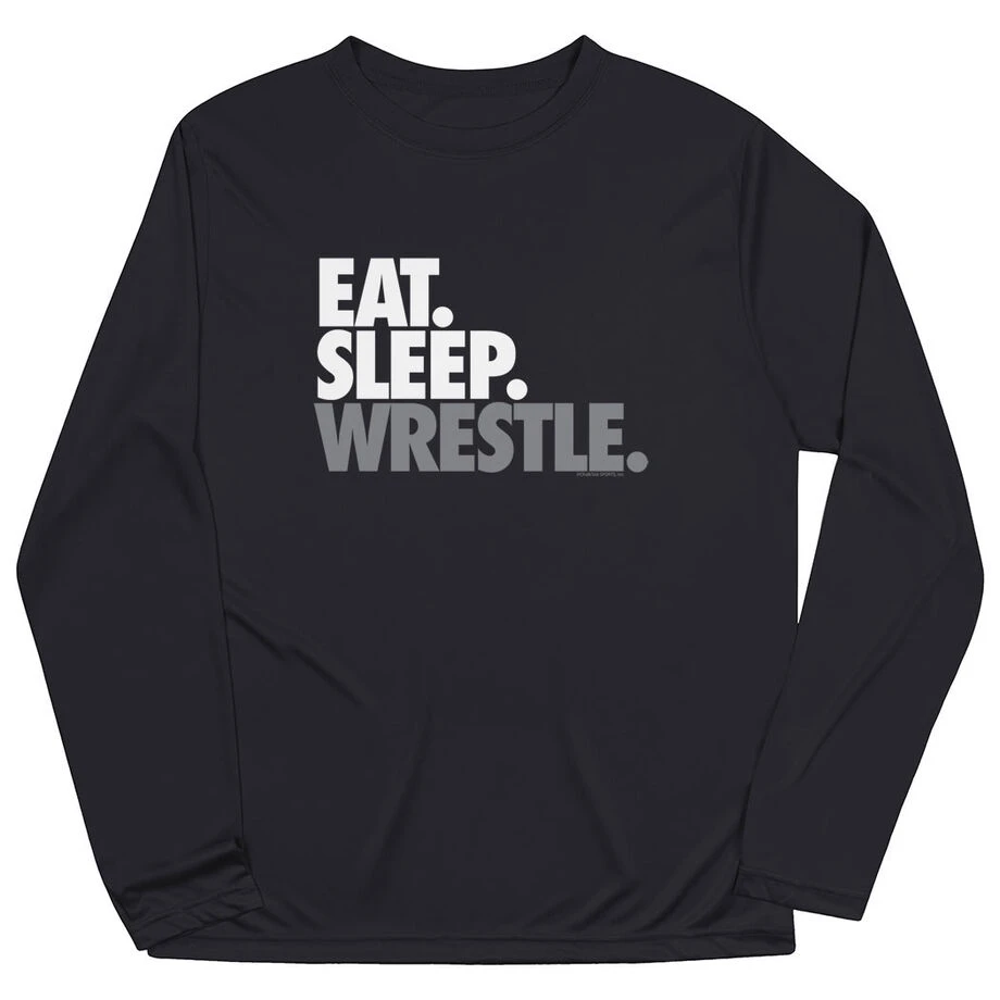 Gear up for a match, practice or any activity with our long sleeve tech tee with a wrestling design, this is the perfect tee to show off that wrestling pride. This moisture-wicking long sleeve athletic tech tee is great way to keep you dry during all activities or daily wear. With UV protection it will be sure to protect your skin as well. This shirt also makes for a great gift for any occasion.