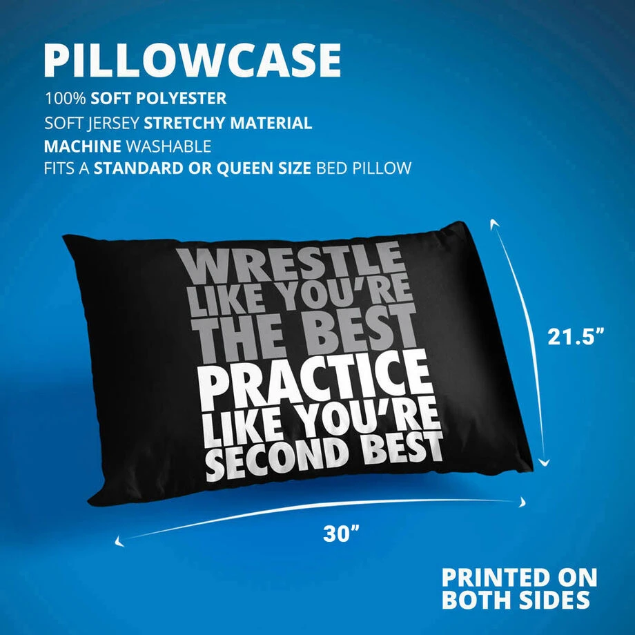 This bold and motivational wrestling pillowcase is sure to be a favorite bedroom accent for any wrestler or team member and is a great gift for any occasion. The 30″ X 20″ pillowcase is made from super soft jersey knit polyester and will fit almost any standard size pillow for an excellent addition to any bedroom and a pillowcase that wrestlers will love to drift off to sleep with night after night. Inspire the team with this great gift – at the beginning of the season, or surprise a favorite wrestler with this unique pillowcase for any occasion.