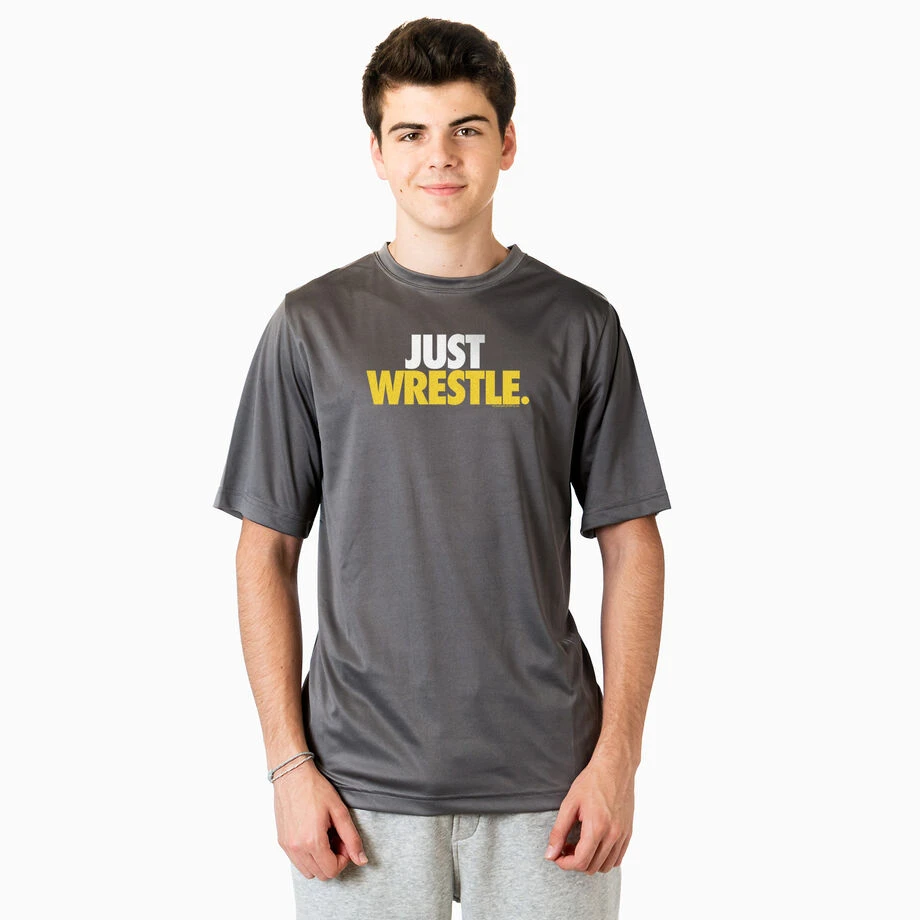 Gear up for a match, practice or any activity with our short sleeve tech tee with a wrestling design, this is the perfect tee to show off that wrestling pride. This moisture-wicking short sleeve athletic tech tee is great way to keep you dry during all activities or daily wear. With UV protection it will be sure to protect your skin as well. This shirt also makes for a great gift for any occasion.