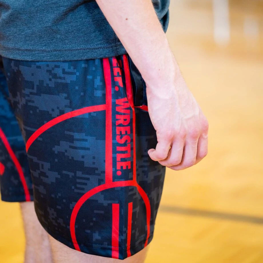 Rep your love of wrestling in style with a pair of our one-of-a-kind Eat Sleep Wrestle shorts. These shorts are sure to be a favorite with any player to and from the gym. Our athletic shorts are ideal for year round wear – whether you are going to a game, practice, lounging or just daily wear. These lightweight, incredibly comfortable moisture-wicking shorts are also equipped with an elastic adjustable waistband and side pockets