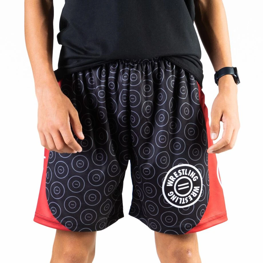 Show off your wrestling pride in style with a pair of our wrestling mat icon shorts, these shorts are sure to be a favorite to any wrestler to wear. Our wrestling shorts are ideal for year round wear, whether you are going to practice, match, lounging or daily wear. These lightweight incredibly comfortable shorts moisture-wicking shorts are also equipped with an elastic adjustable waistband and side pockets.
